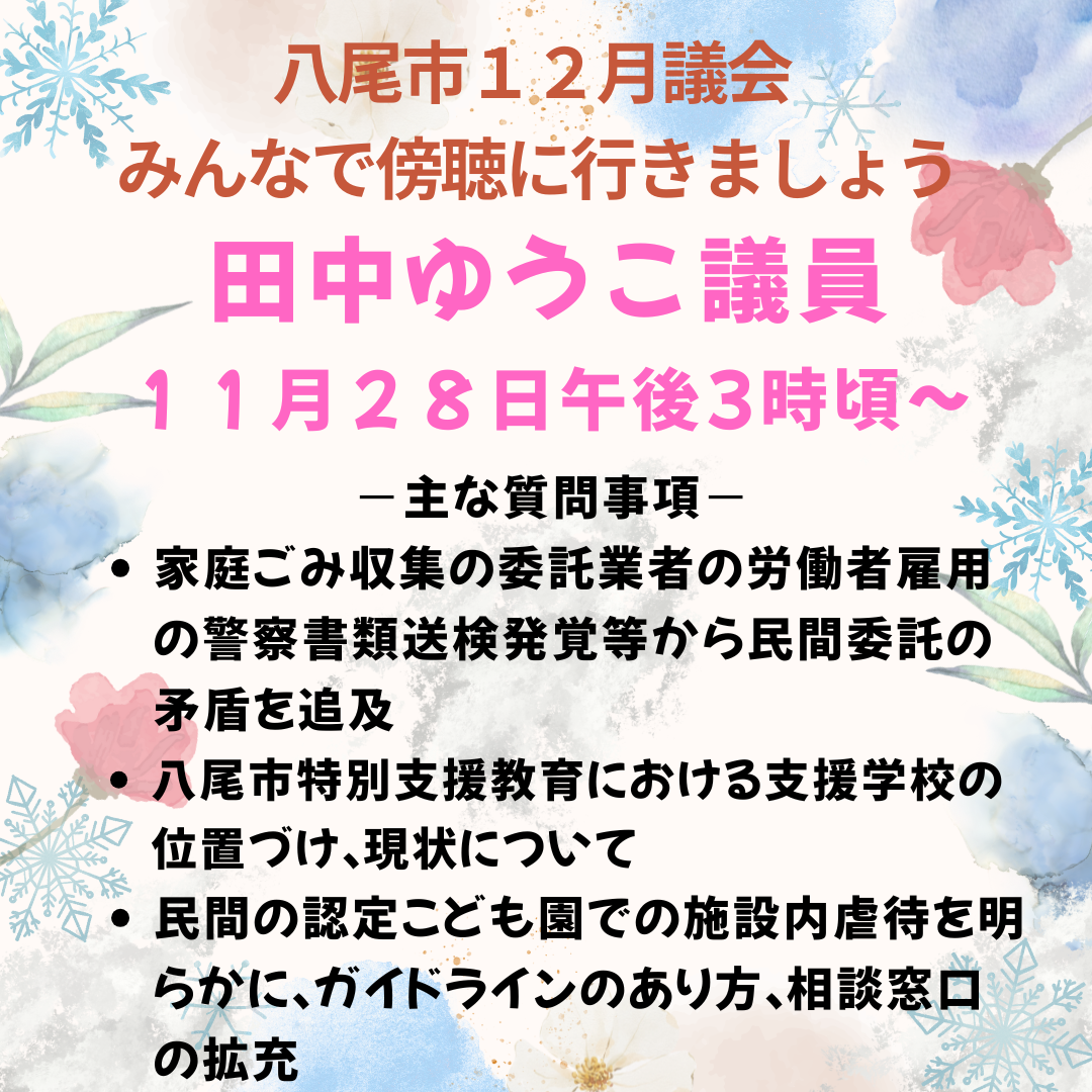 こんにちは。日本共産党八尾市議会議員 田中裕子です。