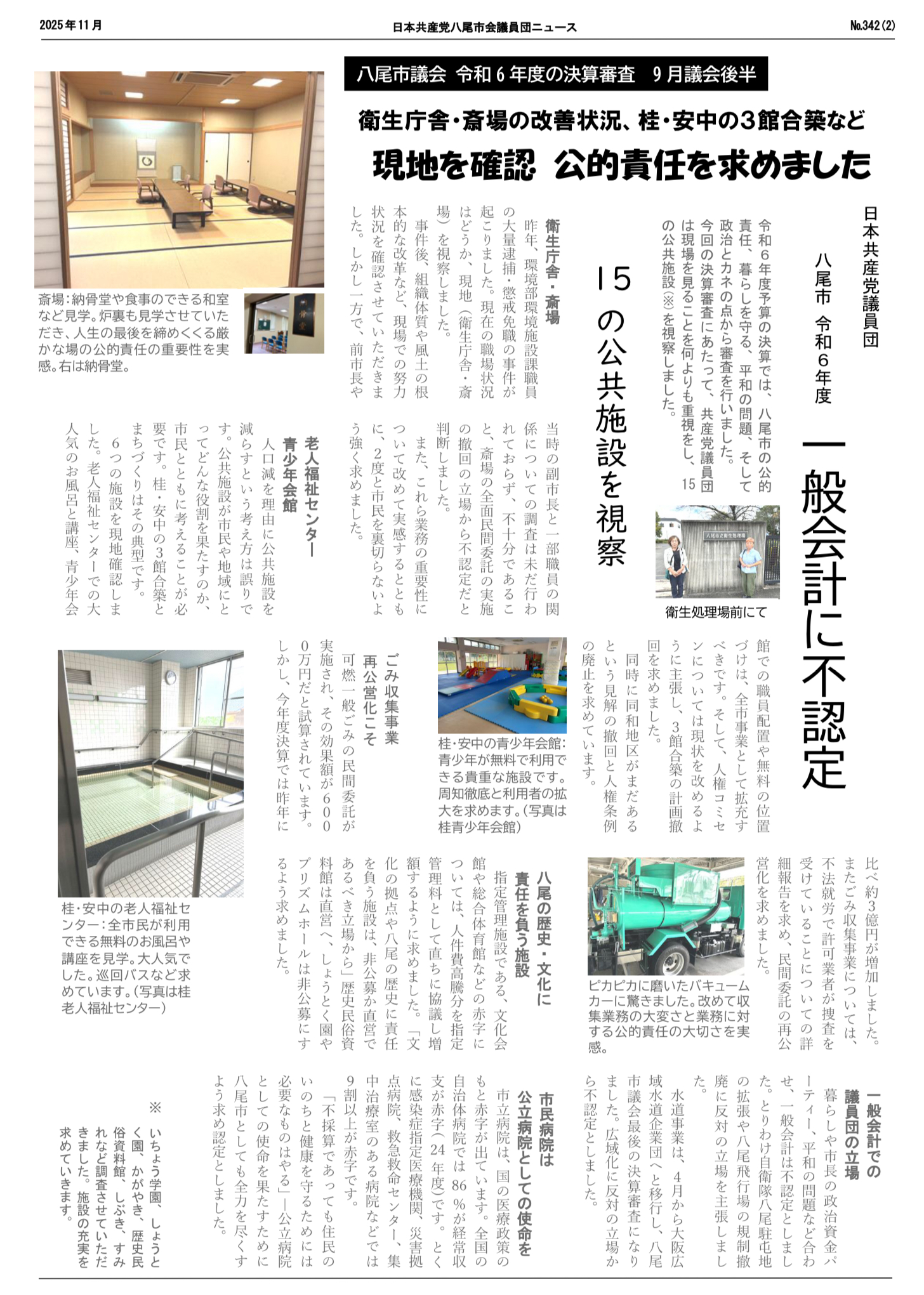こんにちは。日本共産党八尾市議会議員 田中裕子です。
